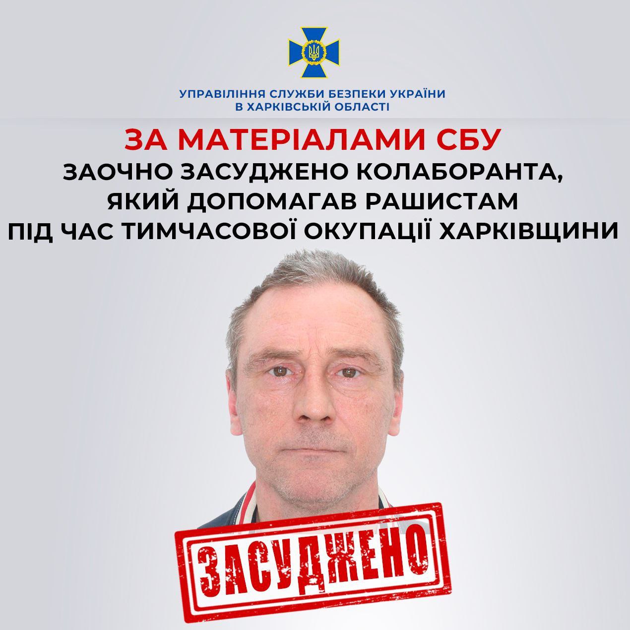 В Харькове суд заочно приговорил коллаборанта, помогавшего оккупантам во время частичного захвата региона, к 5 годам заключения.