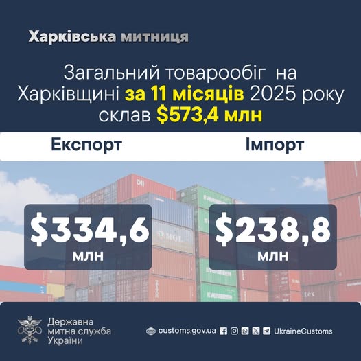 Общий товарооборот Харьковского региона за этот период составил $573,4 млн.
