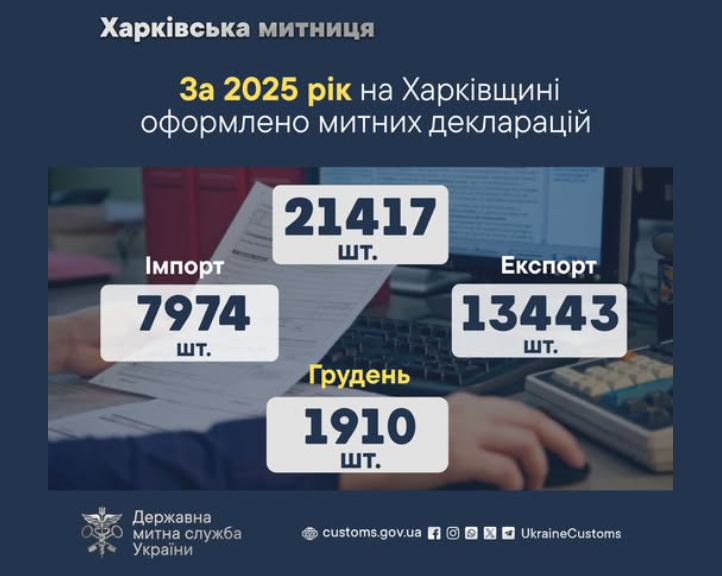 В 2025 году Харьковская таможня увеличила количество оформленных деклараций до 21,4 тыс.