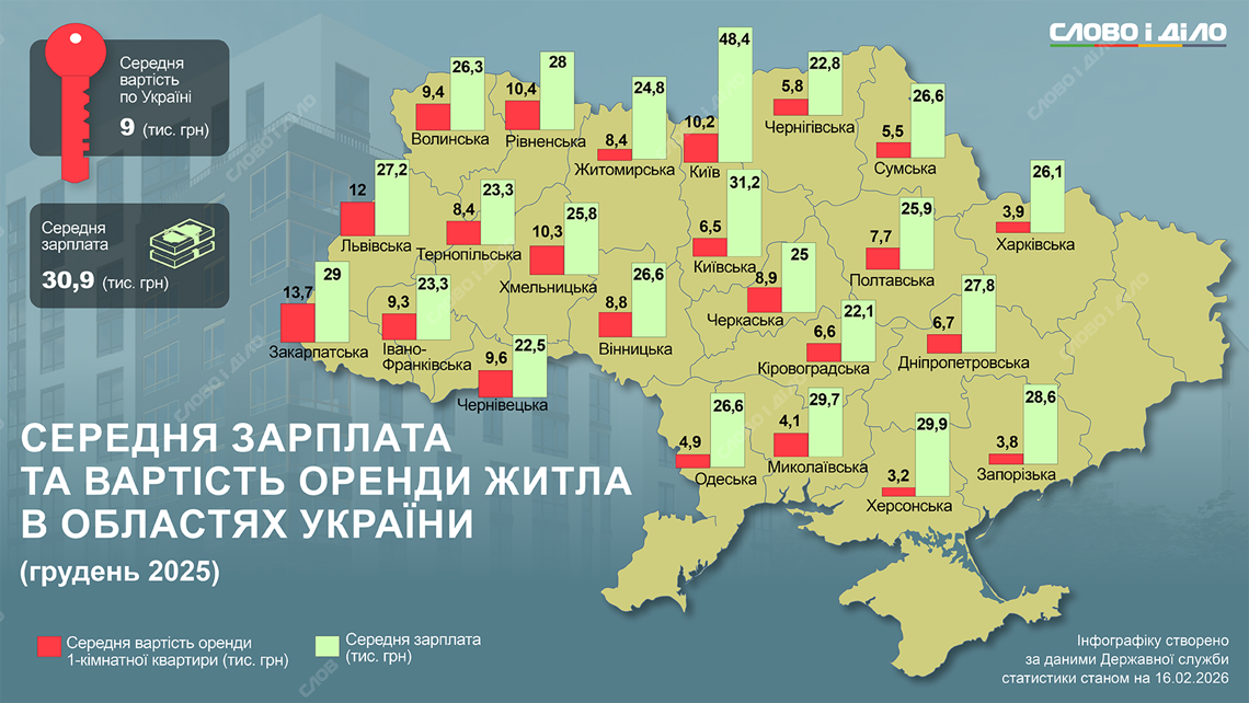 В Киеве, где платят больше (48,4 тыс. грн), квартира обойдется в 10,2 тыс. грн — это уже 21% зарплаты.