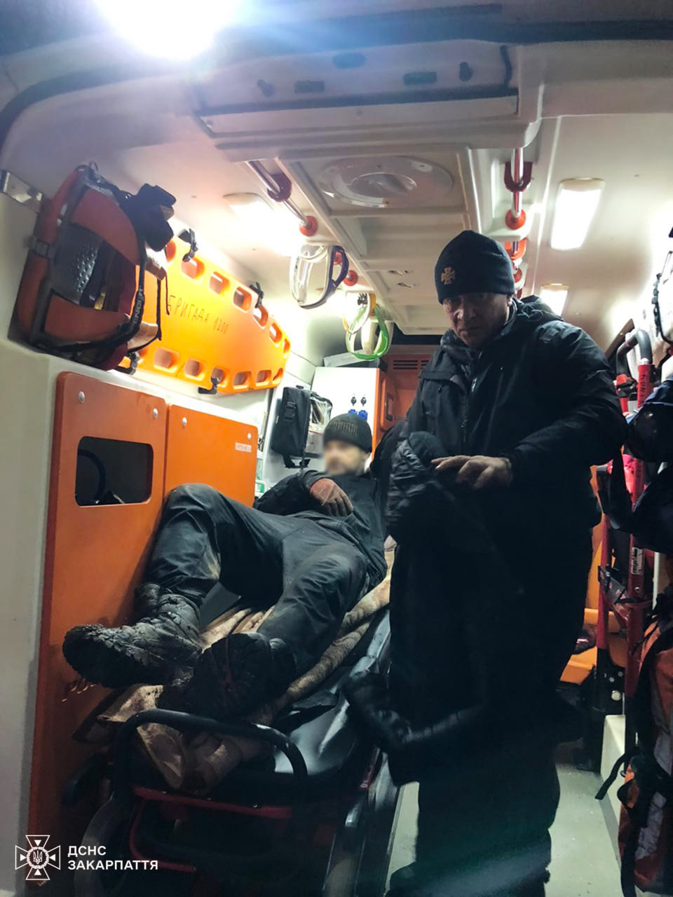 Кроме спасателей, на место отправились и специалисты экстренной медицинской помощи, ведь пострадавший сообщил, что не может двигаться из-за переохлаждения организма и обмороженных конечностей. Горные спасатели села Выдричка и поселка Ясиня добрались до мужчины, оказали ему первую помощь, переодели в сухую одежду и напоили горячим чаем, чтобы он хоть немного согрелся. Далее по носкам его транспортировали в село Делово, откуда автомобилем "экстренки" доставили в Раховскую районную больницу.