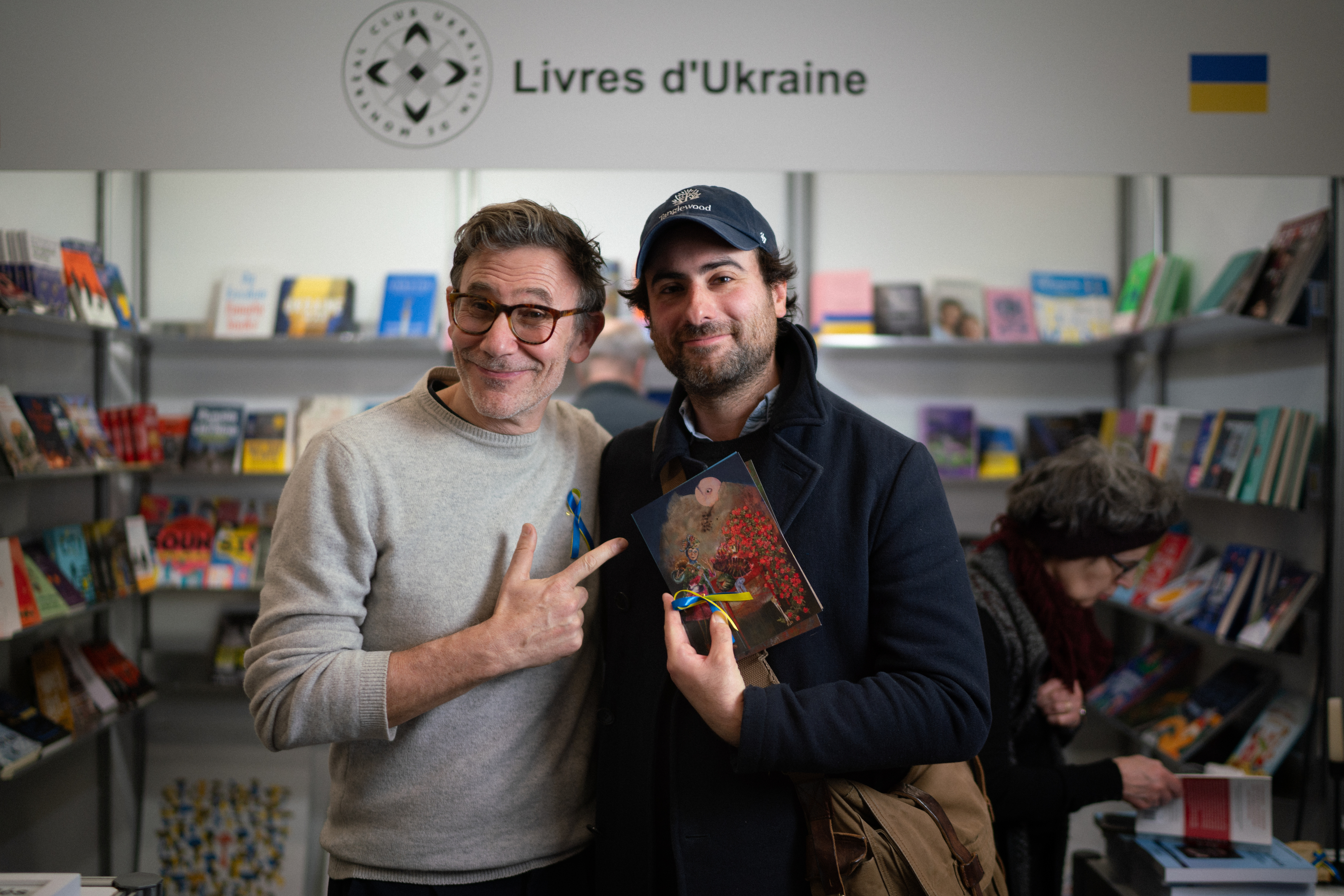 Среди гостей экспозиции был французский режиссер, лауреат премии "Оскар" Мишель Хазанавичюс (фильм "Артист"), который представил свою книгу Carnets d'Ukraine и поддержал детскую выставку.