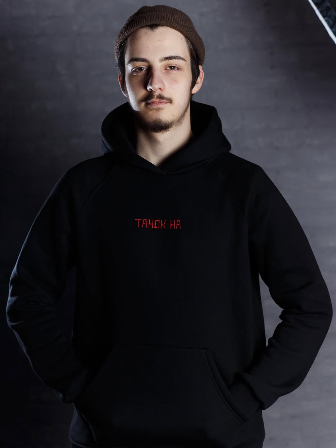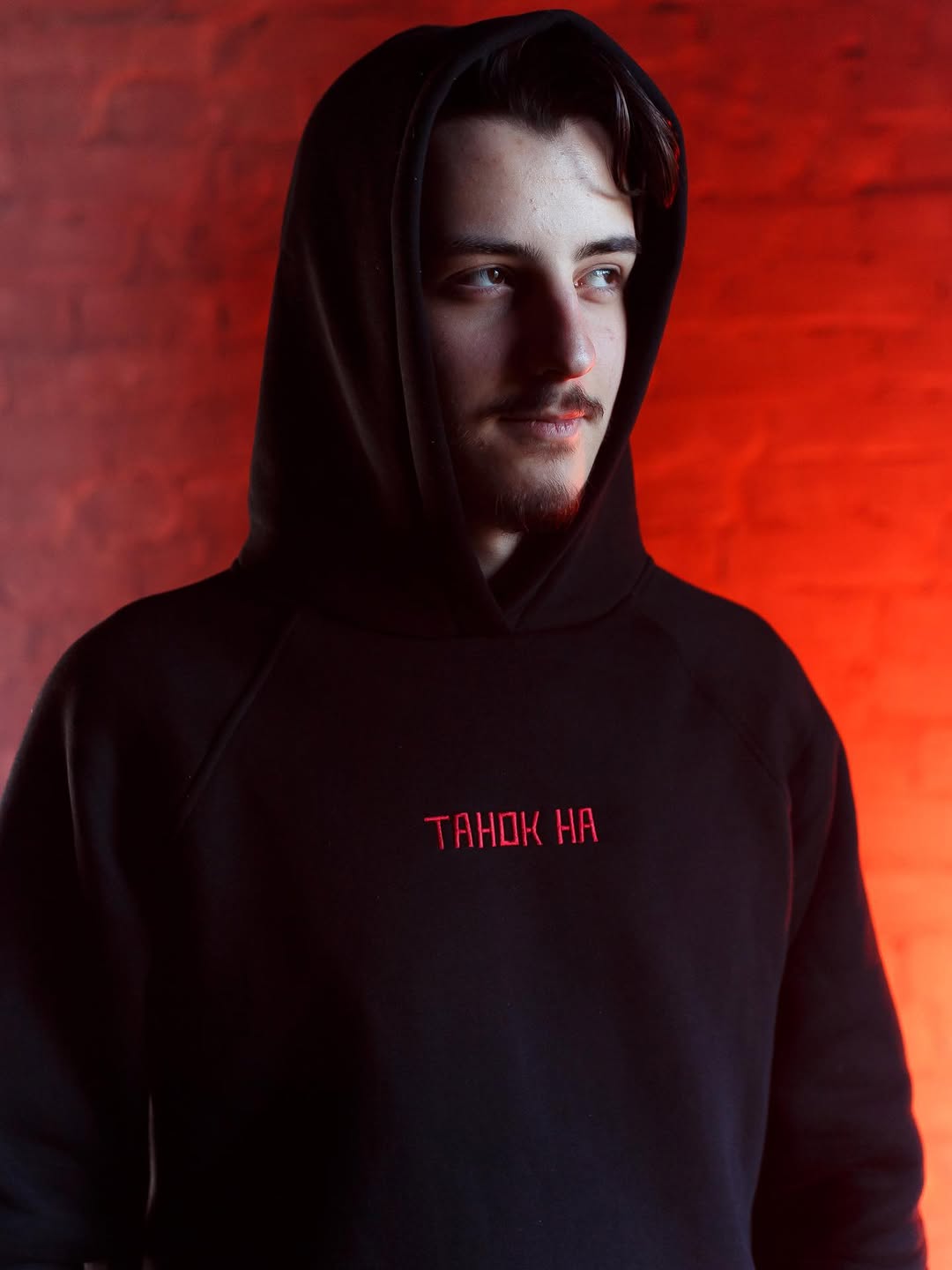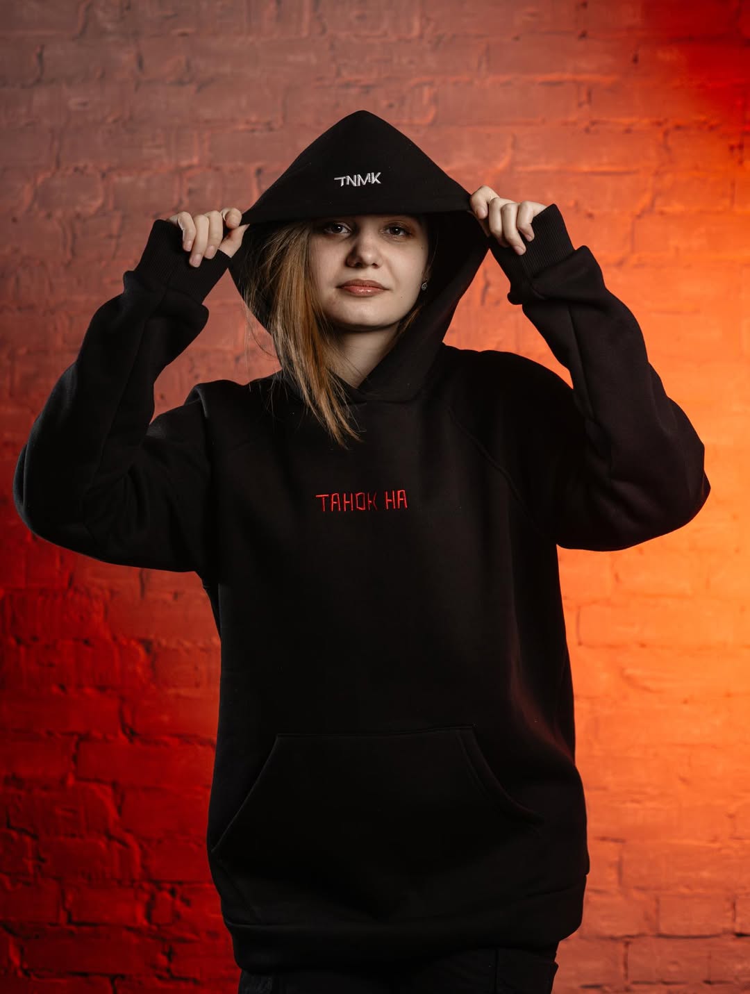 В посте группы размещены фотографии новых худи: спереди на них большими красными буквами написано "ТАНОК НА", а на капюшоне изображен белый логотип TNMK.