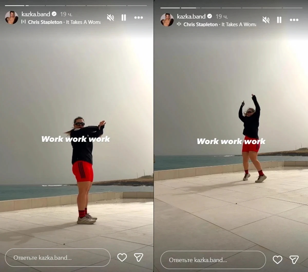 На других фото в stories она показала, как занимается спортом на свежем воздухе, подписав их: "Work, work, work".