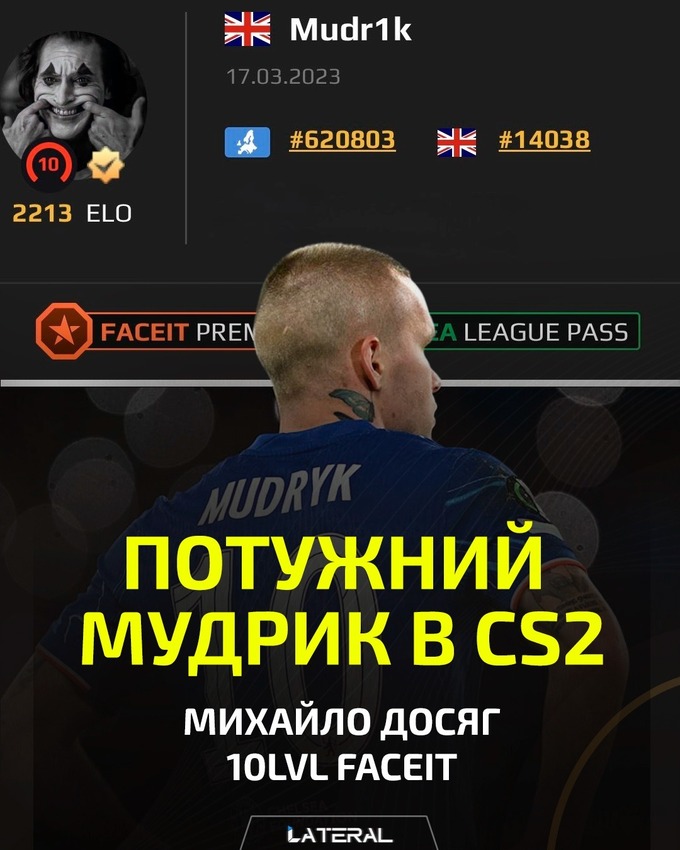 Мудрик сменил поле боя: футболист из Харьковщины стал топ-геймером в CS2