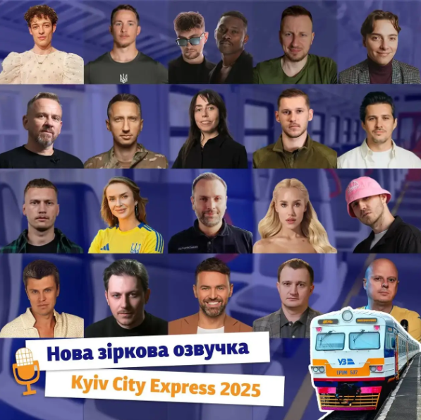 По данным СМИ, в рамках проекта станции кольцевой электрички было озвучено 20 известных украинцев.