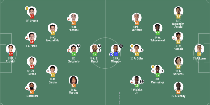 Украинский вратарь из Харьковской области Андрей Лунин получил свою оценку за матч 5-го тура Лиги чемпионов 2025/26, в котором мадридский "Реал" в зрелищном поединке победил "Олимпиакос" со счетом 4:3.
