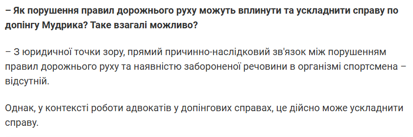 Спортивный юрист Илья Скоропашкин прокомментировал ситуацию, отметив, что прямой связи между нарушением ПДД и делом о допинге нет.