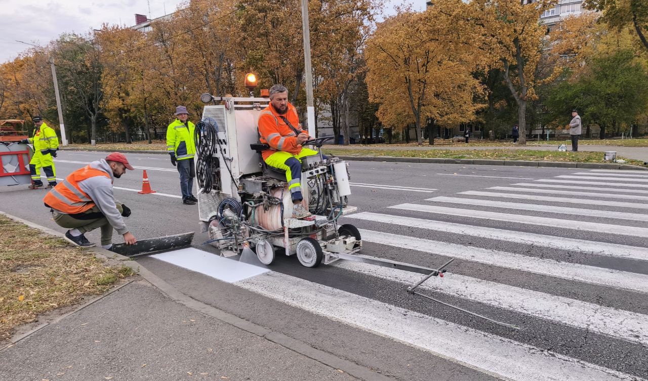 В Харькове специалисты коммунального предприятия "Шляхрембуд" выполняют текущие ремонты улично-дорожной сети, наносят разметку, упорядочивают тротуары и внутриквартальные проезды, восстанавливают асфальтобетонное покрытие после разрытия инженерными службами.