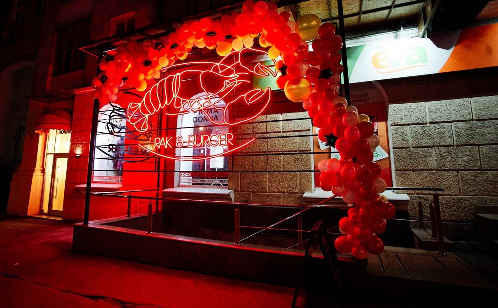 Ресторан в центре Харькова находится в полуподвальном помещении и специализируется на раках и бургерах.