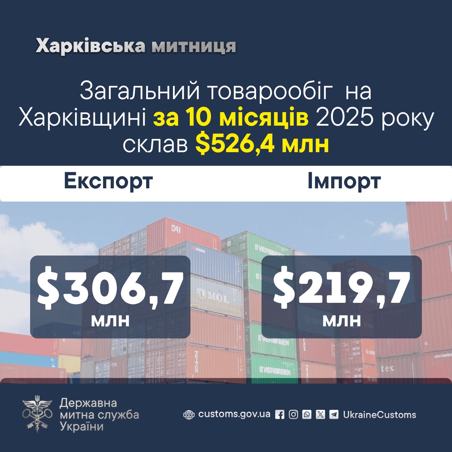 С начала 2025 г. субъекты внешнеэкономической деятельности Харьковщины провели импортно-экспортные операции на общую сумму $526,4 млн.