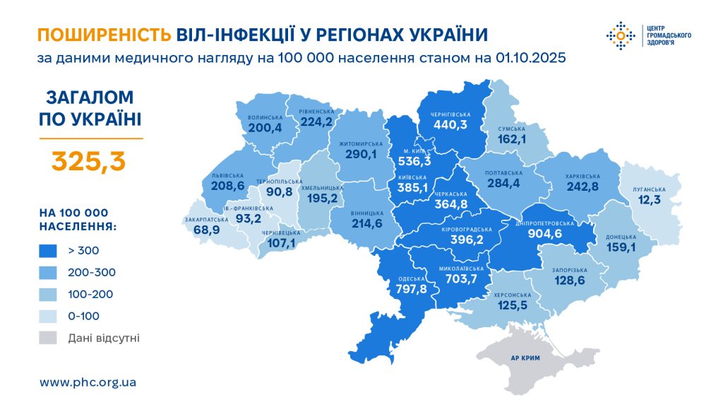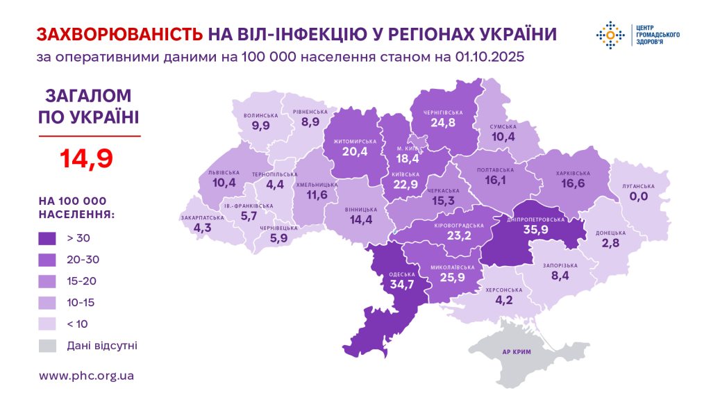 Об этом "Думка" стало известно из графики Центр общественного здоровья Украины.