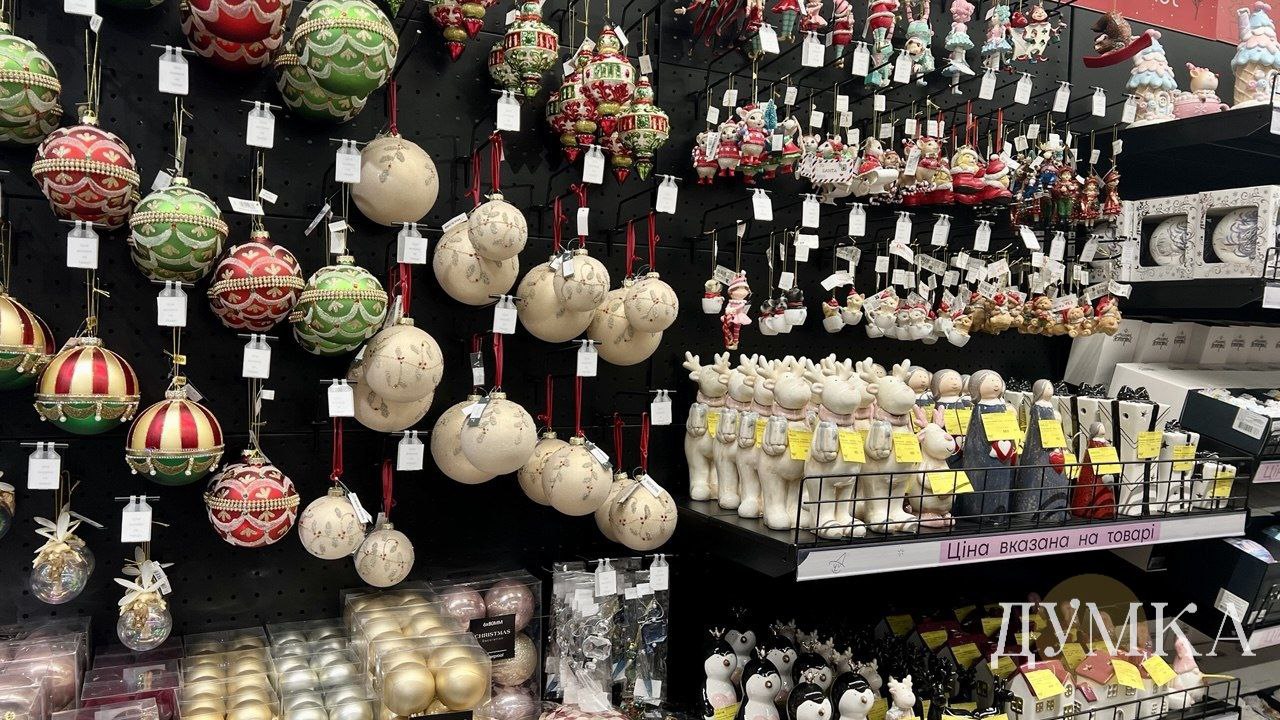 В отделах супермаркетов Рост и Эпицентр представлен бюджетный и средний сегмент: классические шарики, LED-светильники, искусственные елки, наборы украшений.