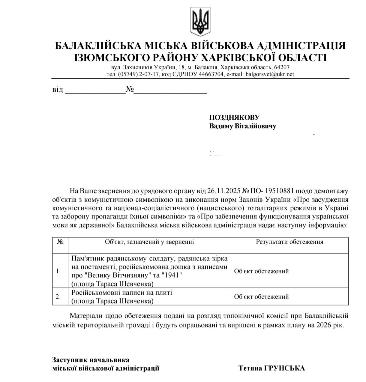 В Балаклее демонтаж советской символики планируется на следующий 2026 год, а в Валках вопросы снятия памятника вынесут на рассмотрение уже 25 декабря.