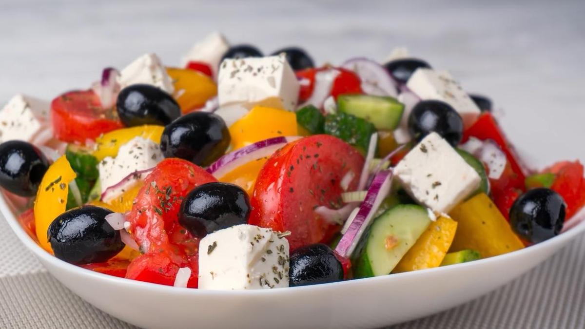 - Греческий салат – свежие овощи, зелень, оливки и сыр фета