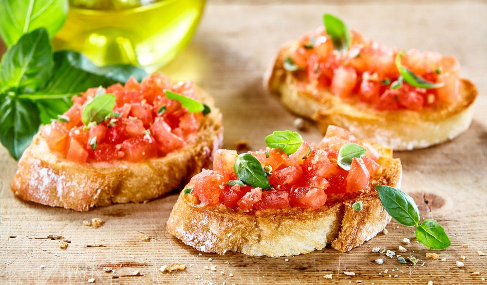 - Брюскеты с помидорами и зеленью, авокадо, с печеными овощами.