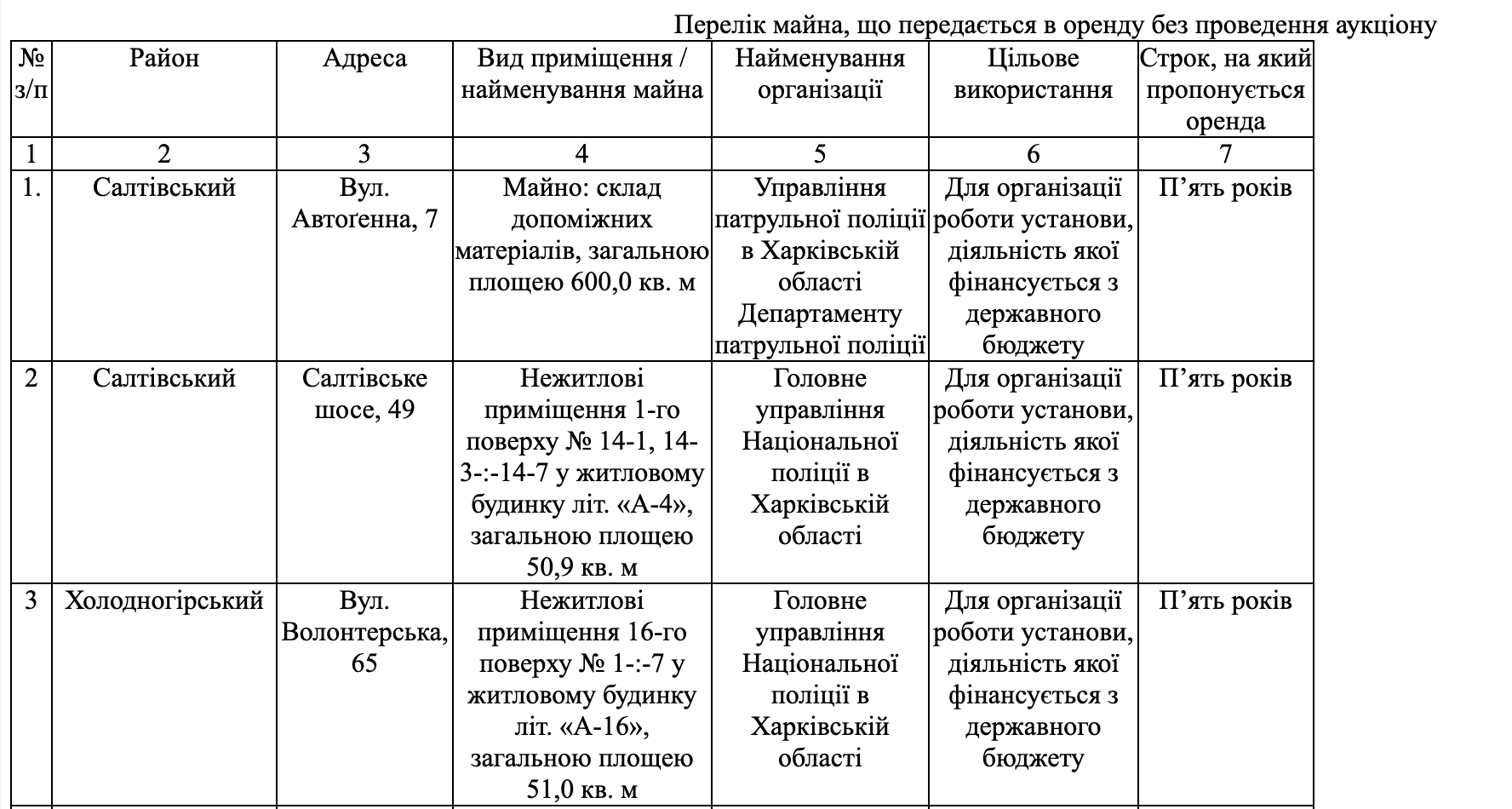 В Харькове передали в аренду без аукциона коммунальные помещения для полиции, органов юстиции, социальных и городских служб.