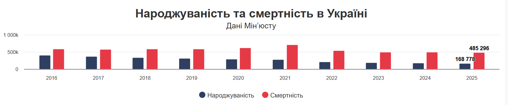 Это означает, что на одного новорожденного приходится почти пять умерших, что значительно превышает средний показатель по Украине, где на одного ребенка приходится трое умерших.