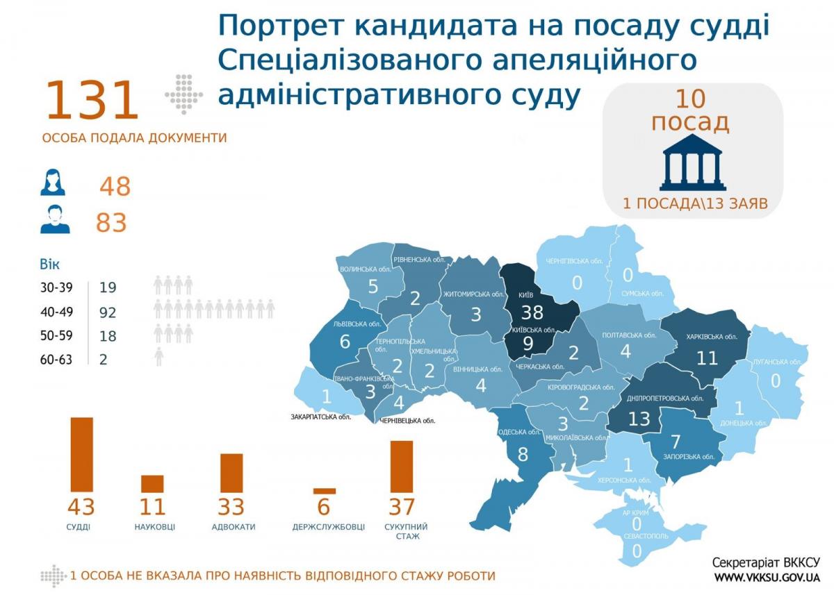 Об этом "Думке" стало известно из данных Высшей квалификационной комиссии судей Украины и инфографики ВККСУ.
