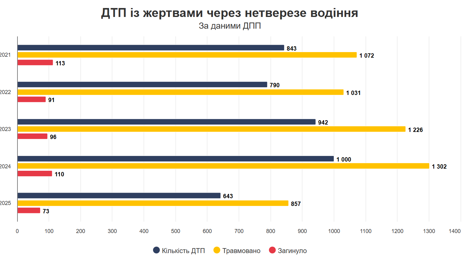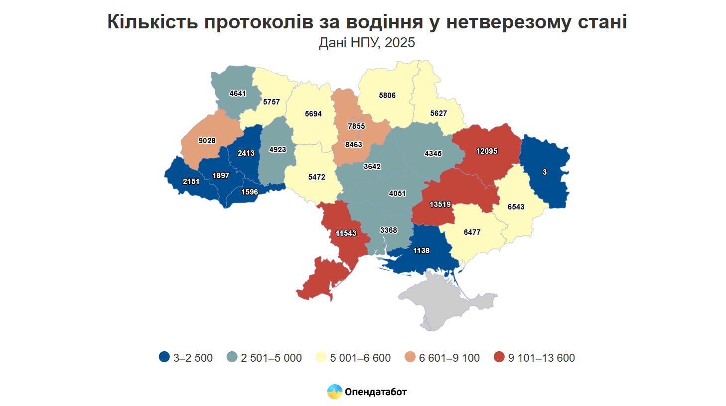 Это на 8% меньше, чем в 2024 году. Впервые за пять лет количество пьяного вождения в Украине несколько уменьшилось.