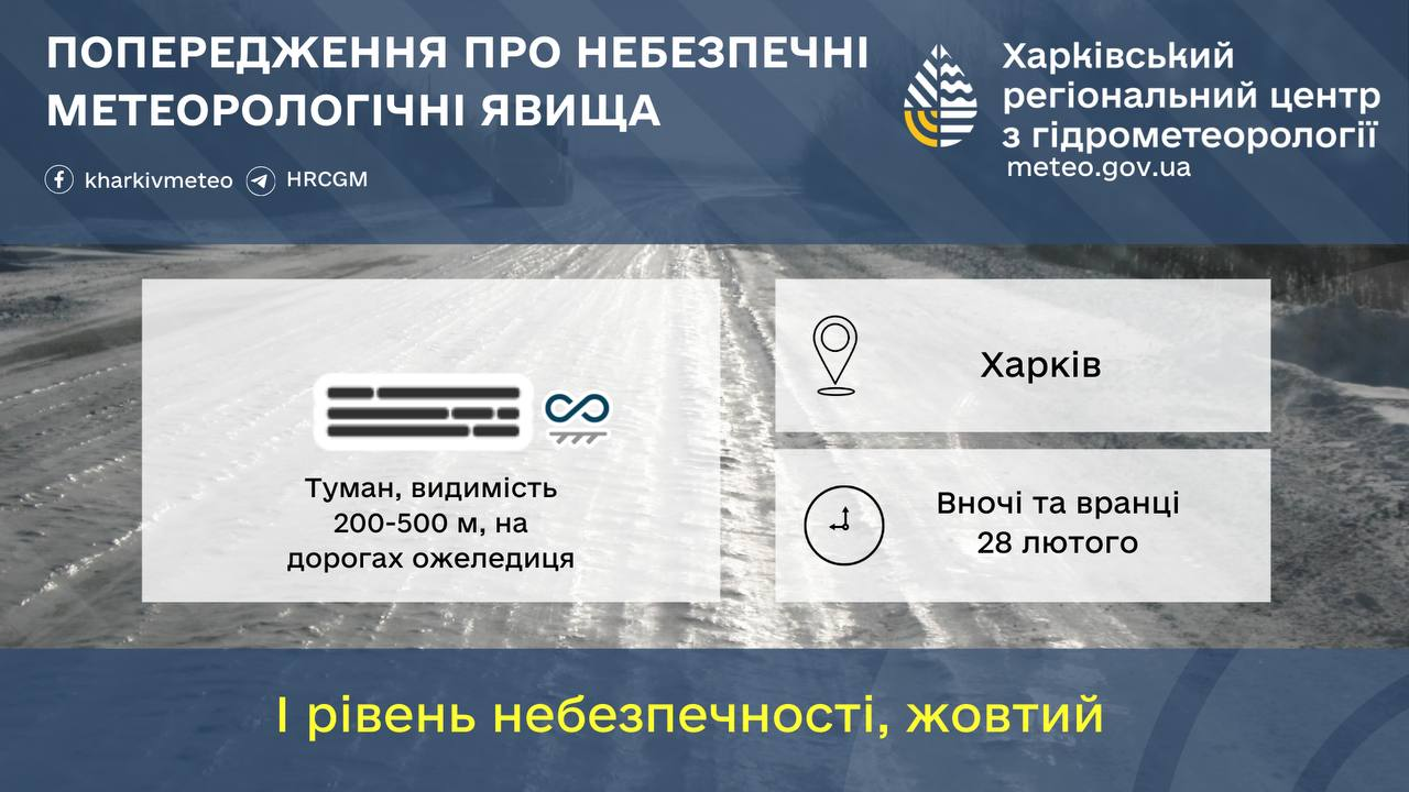 Погодные условия в Харькове 28 февраля осложнятся густым туманом и гололедицей на дорогах.