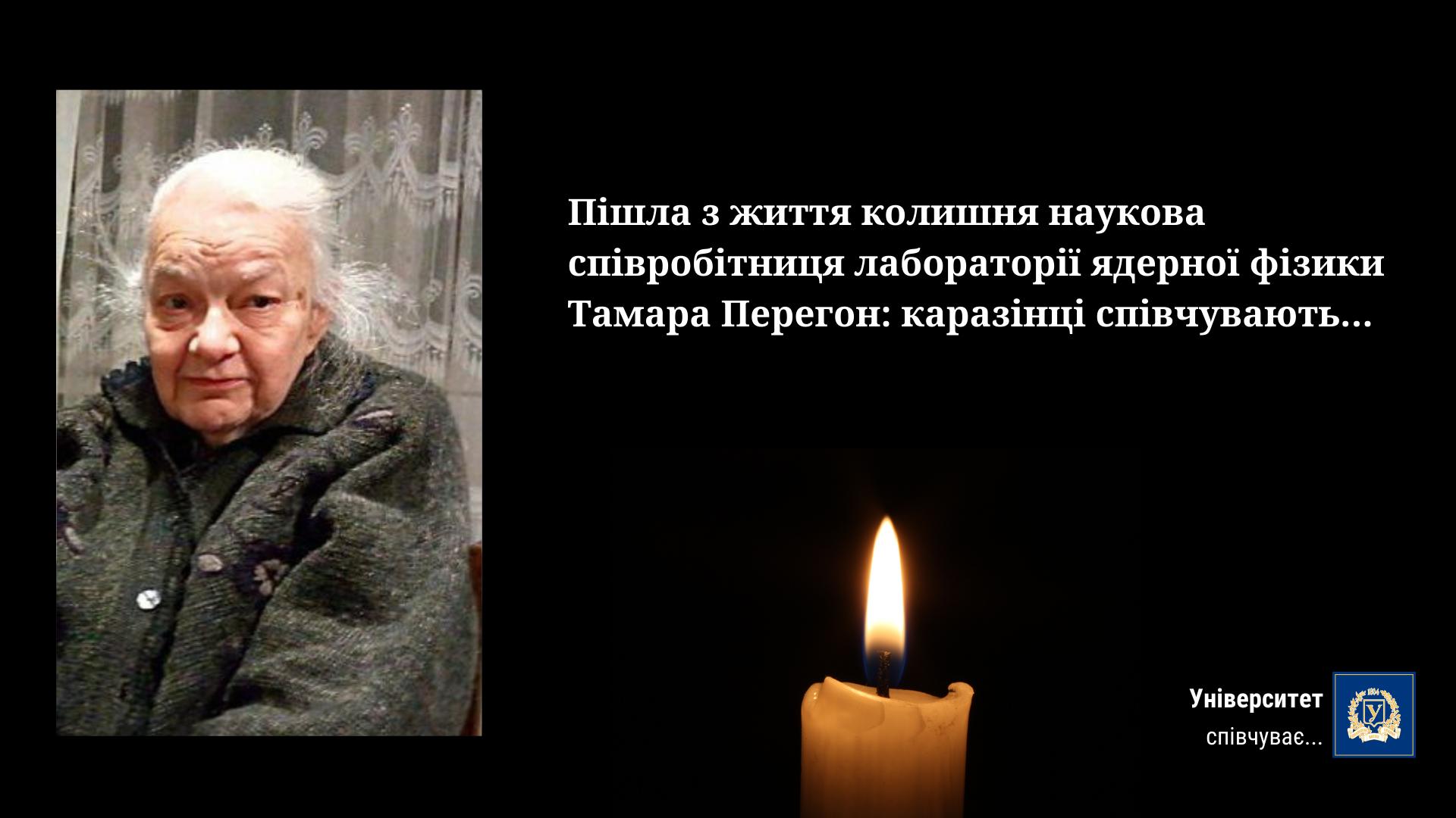 Ушла из жизни бывшая сотрудница лаборатории ядерной физики Каразинского университета Тамара Перегон.