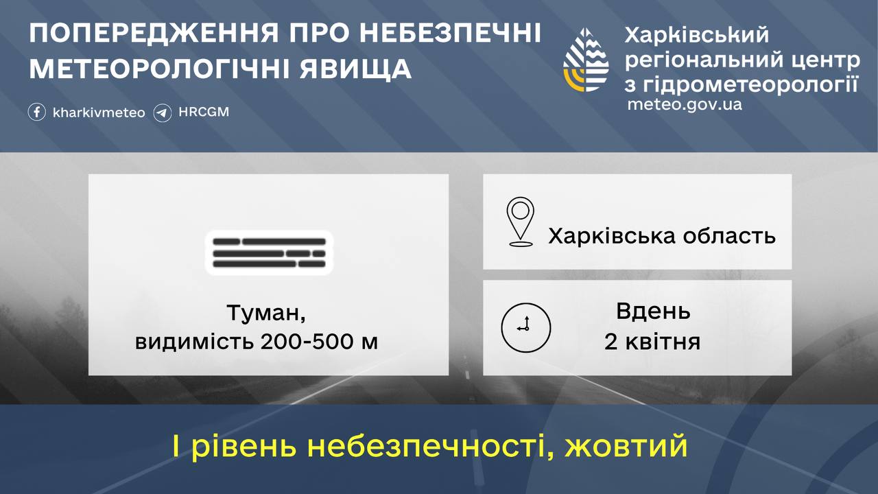 В Харьковской области 2 апреля днем ожидается туман с видимостью 200-500 метров.
