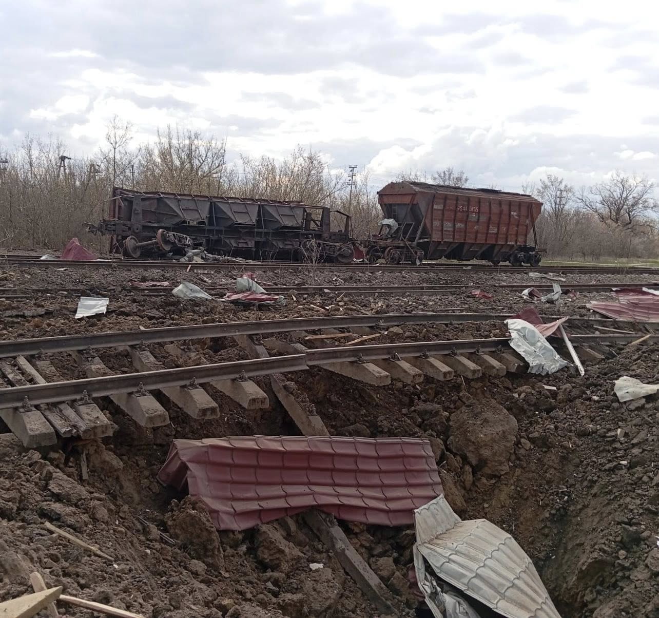 Самый разрушительный удар был зафиксирован 13 апреля в поселке Приколотное: предварительно ракета Х-22 попала в район железнодорожного вокзала. Повреждена инфраструктура предприятия, детский сад, магазины и частные дома. Информация о пострадавших не поступала.
