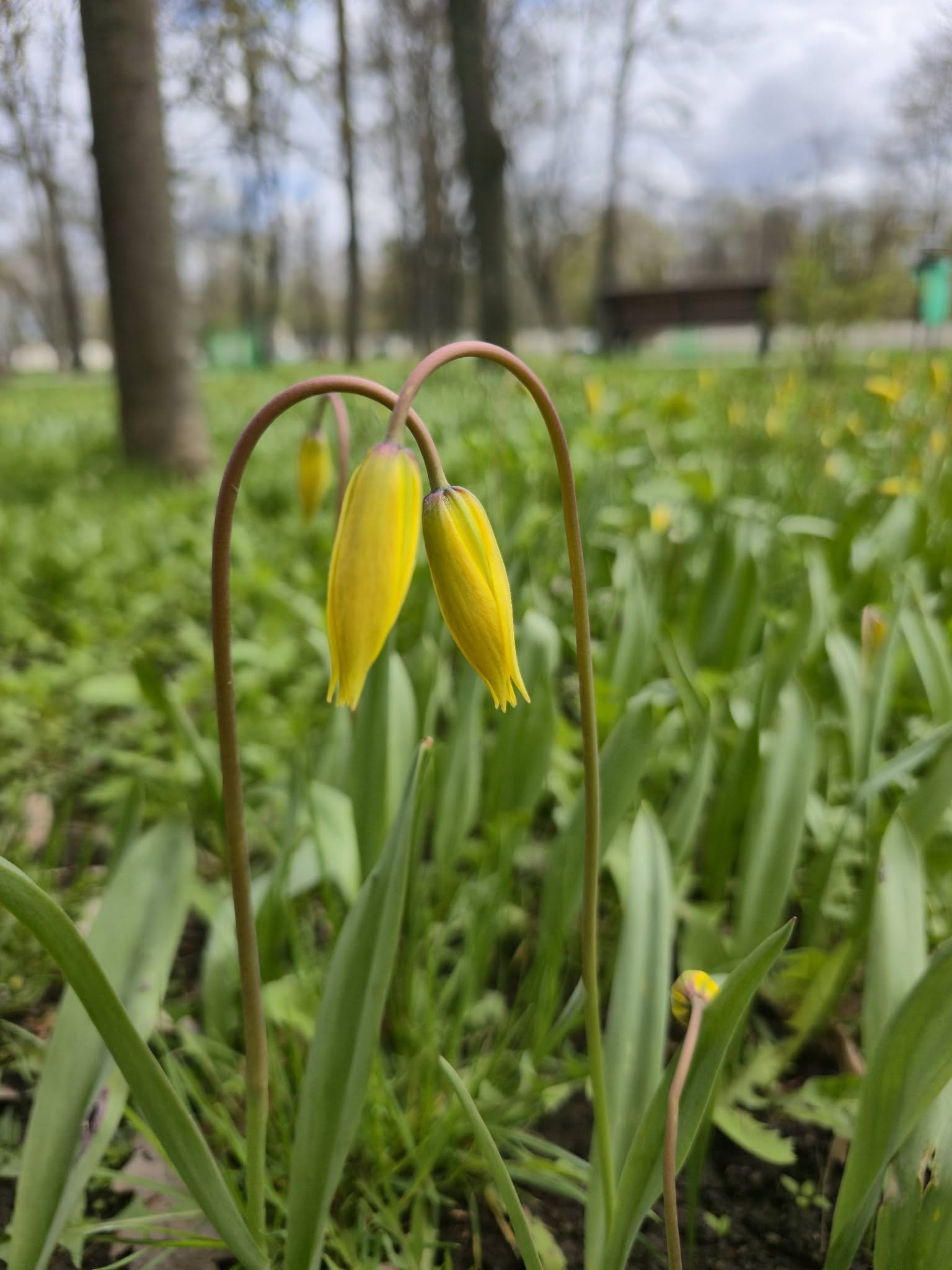 В Молодежном парке Харькова расцвели тюльпаны дубравные – редкие весенние цветы, занесенные в Красную книгу Украины.
