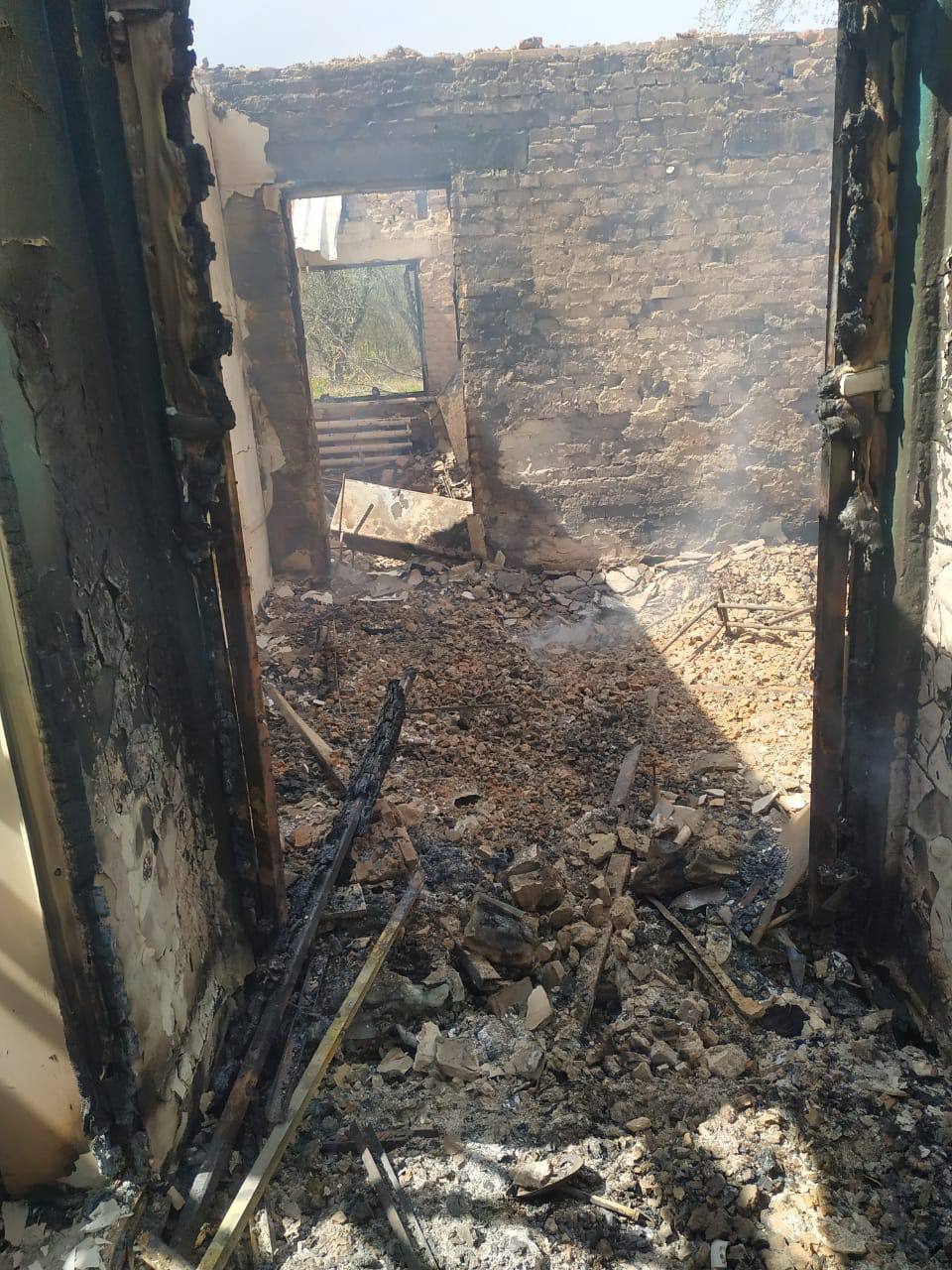 Еще один удар пришелся по частному дому – там возник пожар, значительно разрушена крыша, выбиты окна и повреждены двери.
