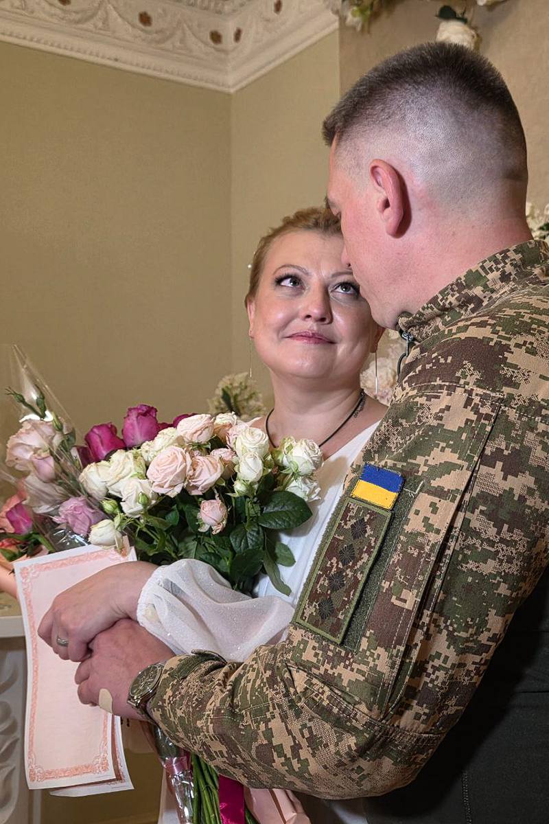 Антон рассказывает, что до полномасштабного вторжения России одним из направлений его съемок были "love story". Он устраивал фотосессии для новобрачных. Последние три с половиной года в его объективе была только война, но теперь в его портфолио появились снимки и по собственной свадьбе. Спутницей нацгвардейца стала волонтер Елена. Девушка собирает и покупает для 5 Слобожанской бригады "Скиф" зарядные устройства, рации, тепловизоры, приборы ночного видения и дроны. За несколько минут до церемонии бракосочетания Елена успевает сказать, что влюбилась в своего защитника на первом же свидании.