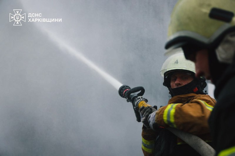 Непрерывная ракетно-дроновая атака по Харьковщине: спасатели показали кадры ликвидации пожаров