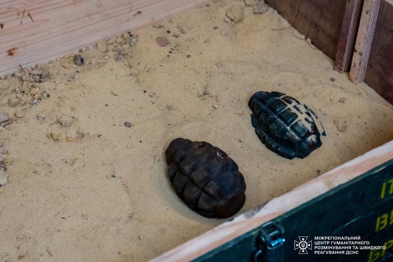 Две ручные гранаты Ф-1 нашли у себя во дворе хозяева в одном из сел Харьковской области.