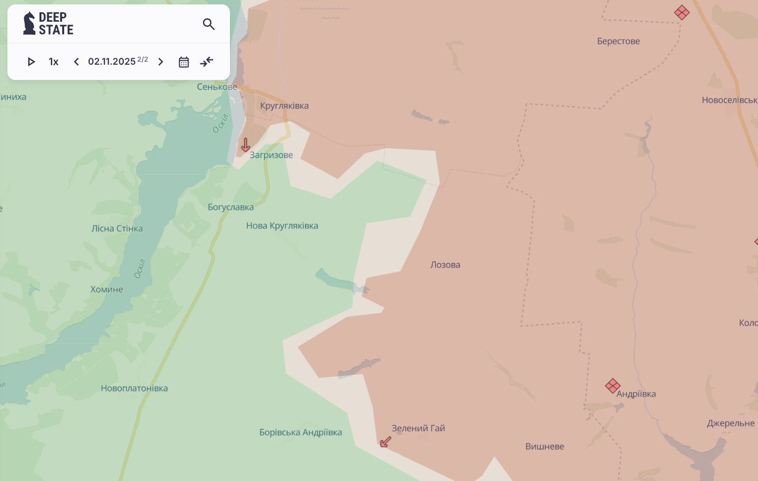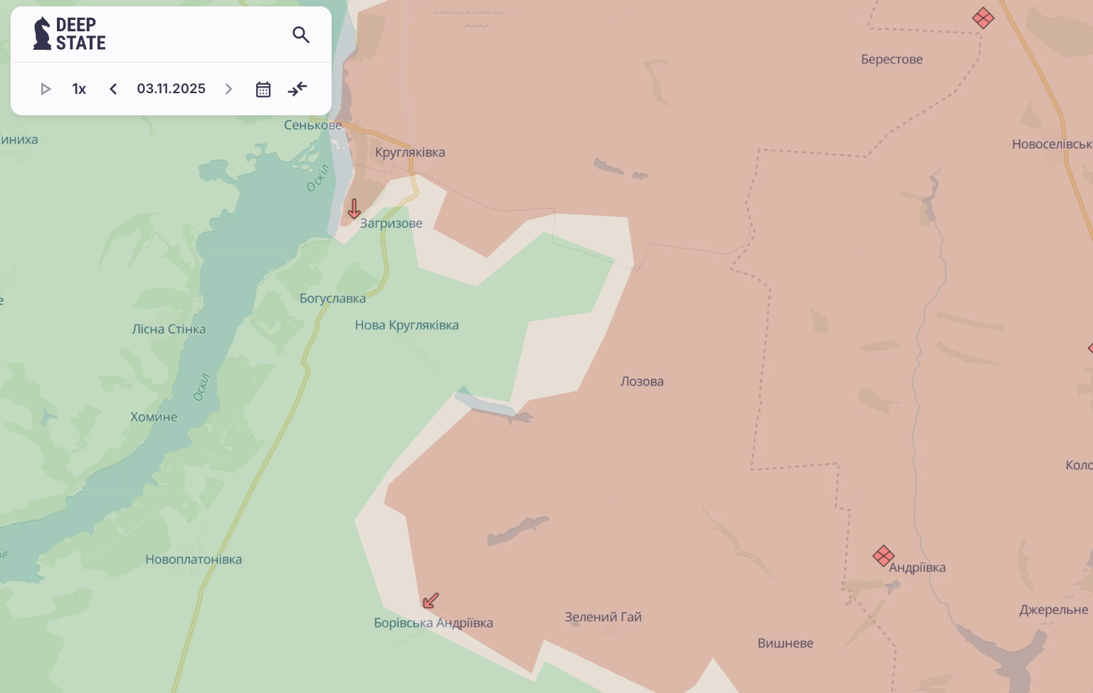Между картами за 2 и 3 ноября 2025 видно, что серая зона уменьшилась, а часть территории у Боровской Андреевки обозначена уже как под контролем российских войск.