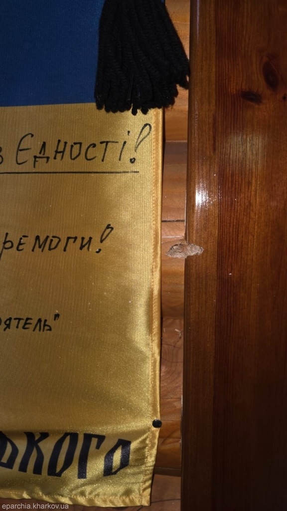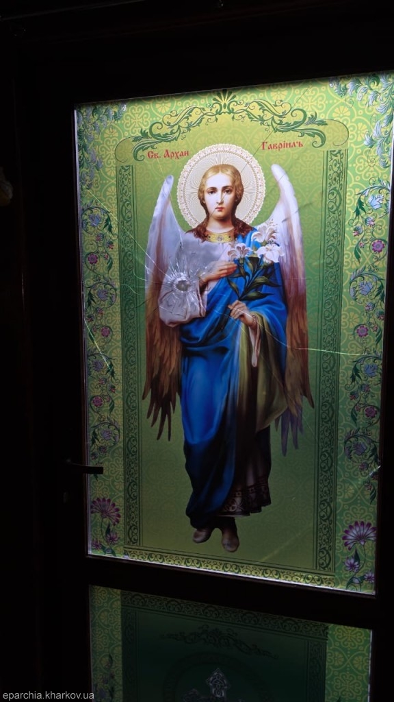 В Свято-Духовском храме Богодухова осколками выбило окна, частично изуродован фасад и иконы храма. Пострадавших нет.