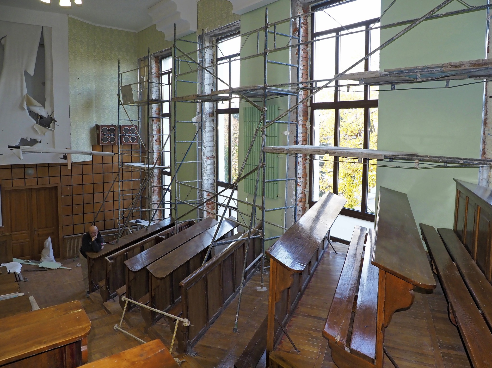 "Замена поврежденных взрывом вражеской авиабомбы окон в легендарной 307-й аудитории. И консервация на зиму окон в ее сестре - не менее легендарной 410-й", - говорится в сообщении.