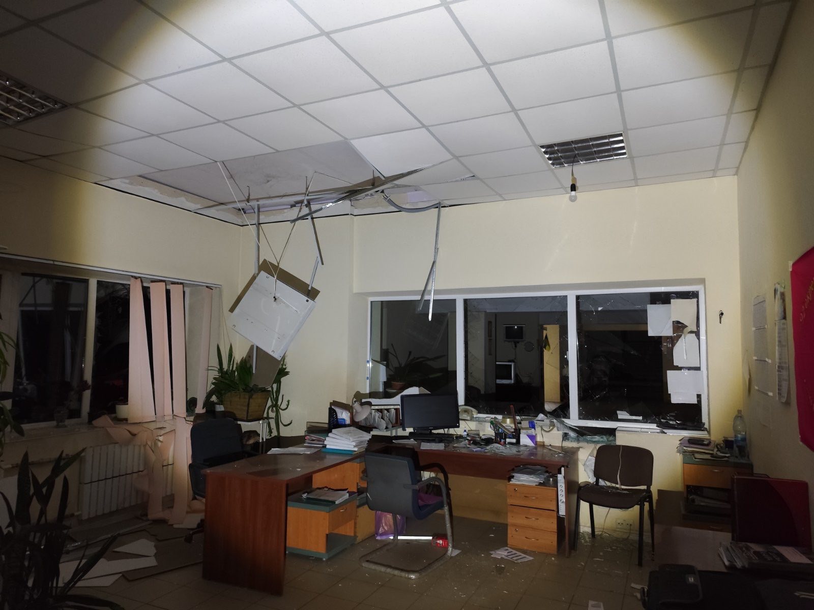 По данным центра, удар повредил потолок, систему отопления, фасад, выбил окна и двери, исчезло электроснабжение, повреждены автомобили.