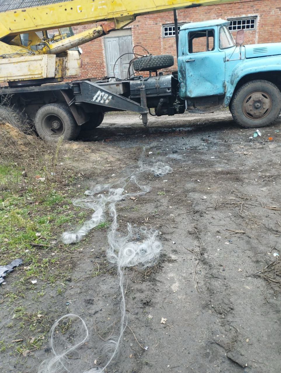 По его словам, FPV-дрон попал в автокран и грузовик. Техника получила повреждения.