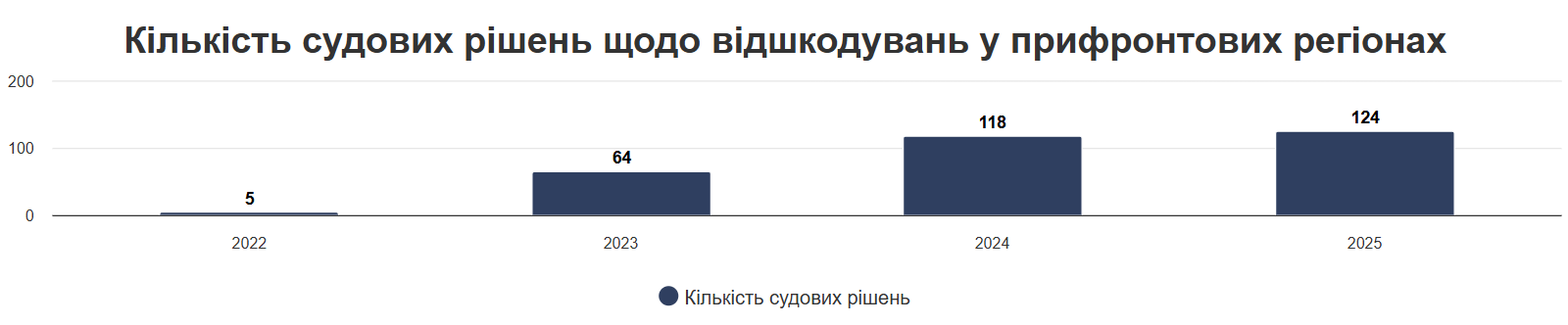Всего в прифронтовых областях принято 311 решений на сумму более 386 млрд грн – это половина всех подобных решений по стране.