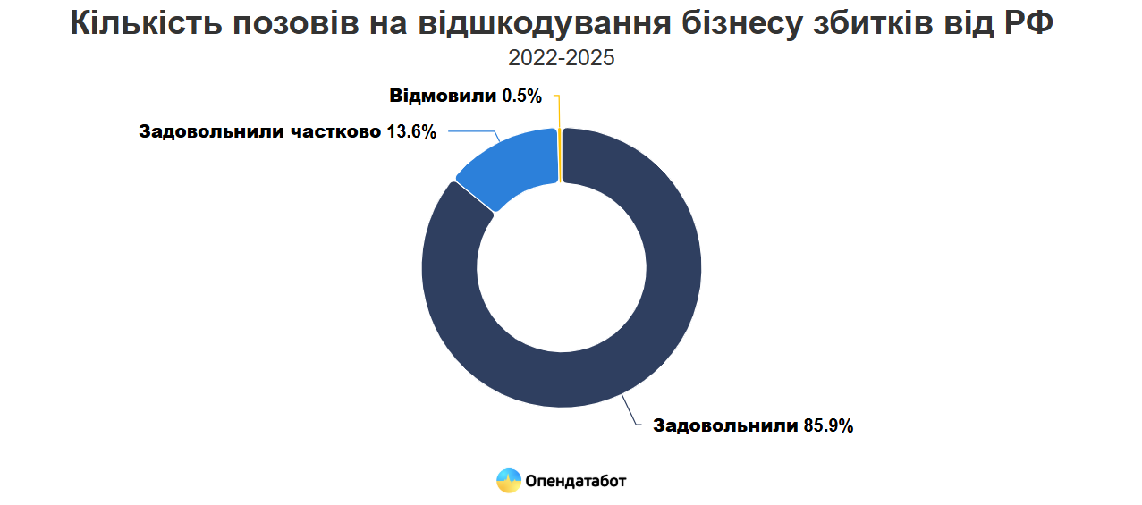 В 85% случаев иски удовлетворялись полностью. Только три иска получили отказ – все в Киеве в 2024 году.