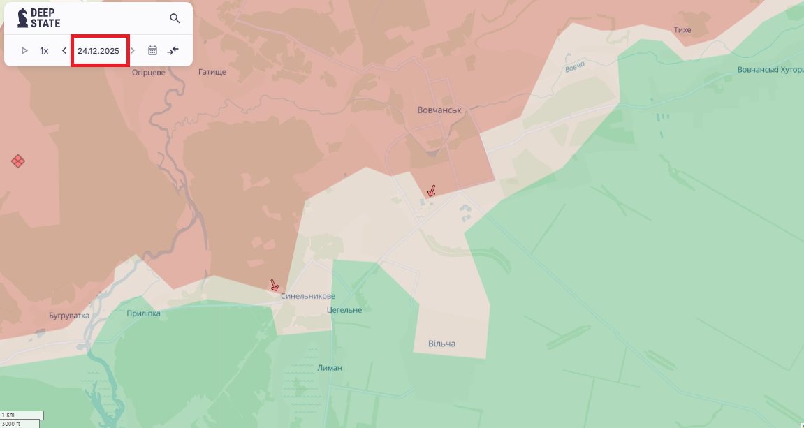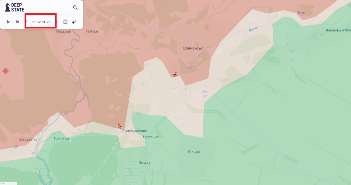 По данным Deep State, российская армия вчера, 24 декабря, продвинулась в городе Волчанск.