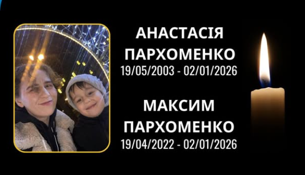 По данным администрации, 02 января 2026 во время обстрела многоэтажного жилого дома в Харькове погибли 22-летняя Анастасия Пархоменко и ее 3-летний сын Максим.