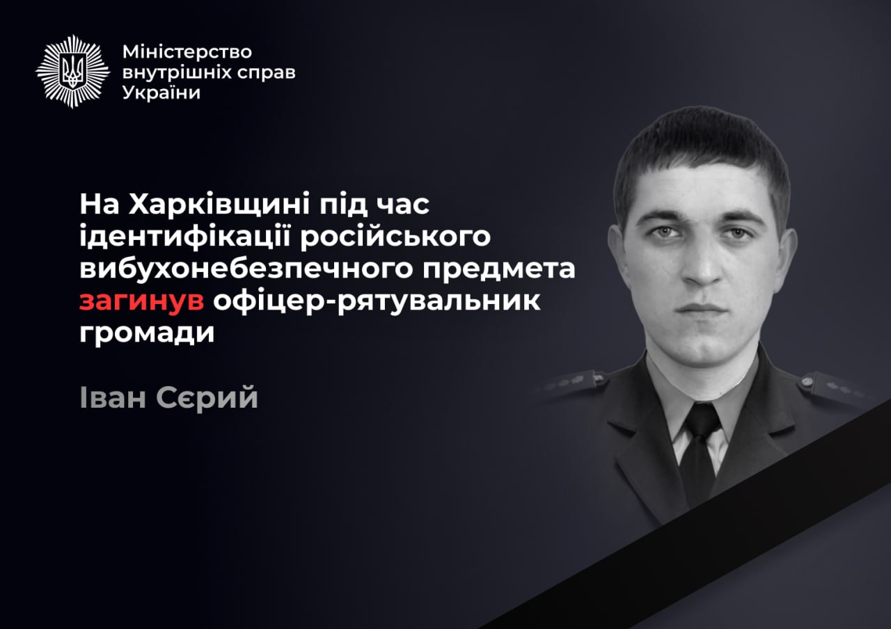 В Харьковской области во время исполнения обязанностей погиб капитан ГСЧС Иван Серый.