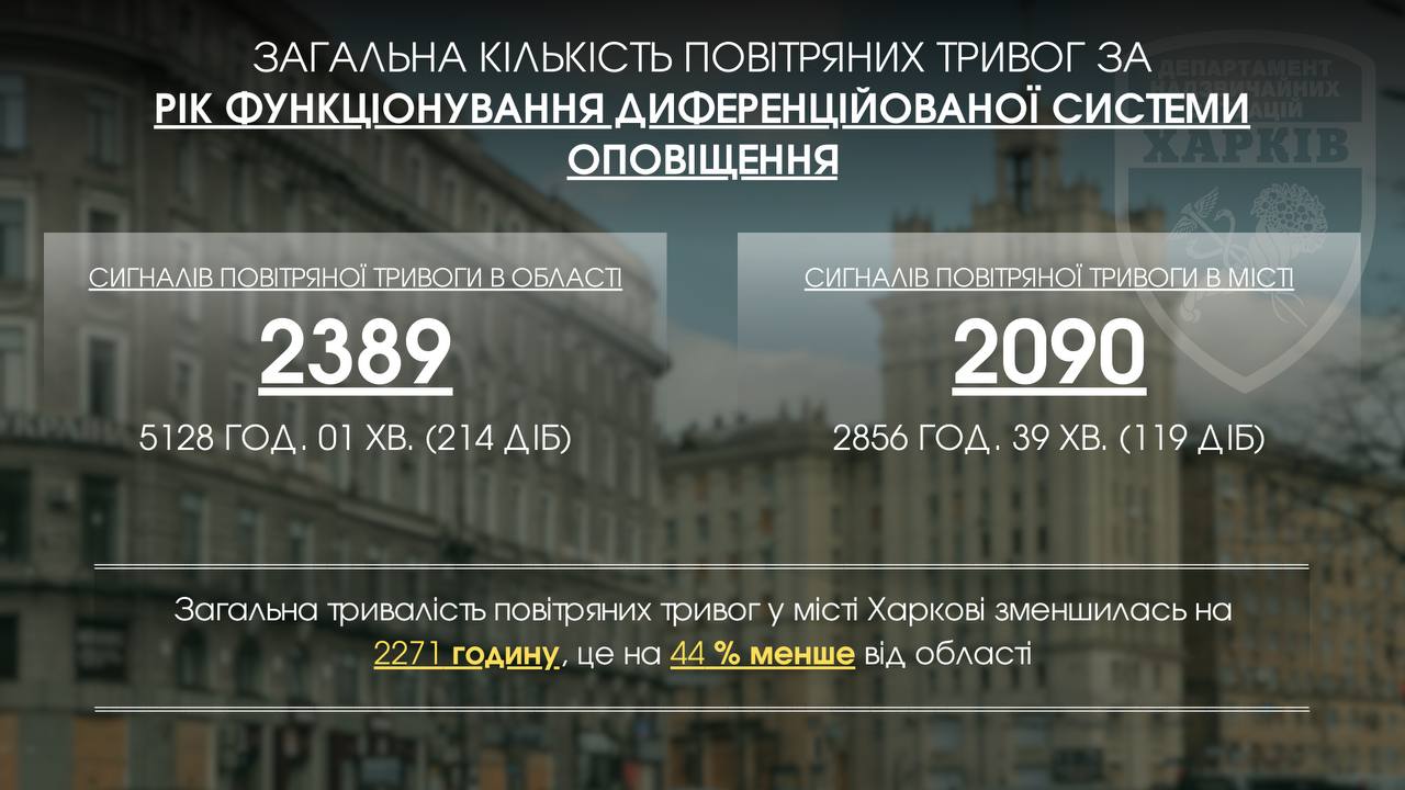 По данным мэра, общая продолжительность воздушных тревог в Харькове уменьшилась на 2271 час, или 44% по сравнению с областью.