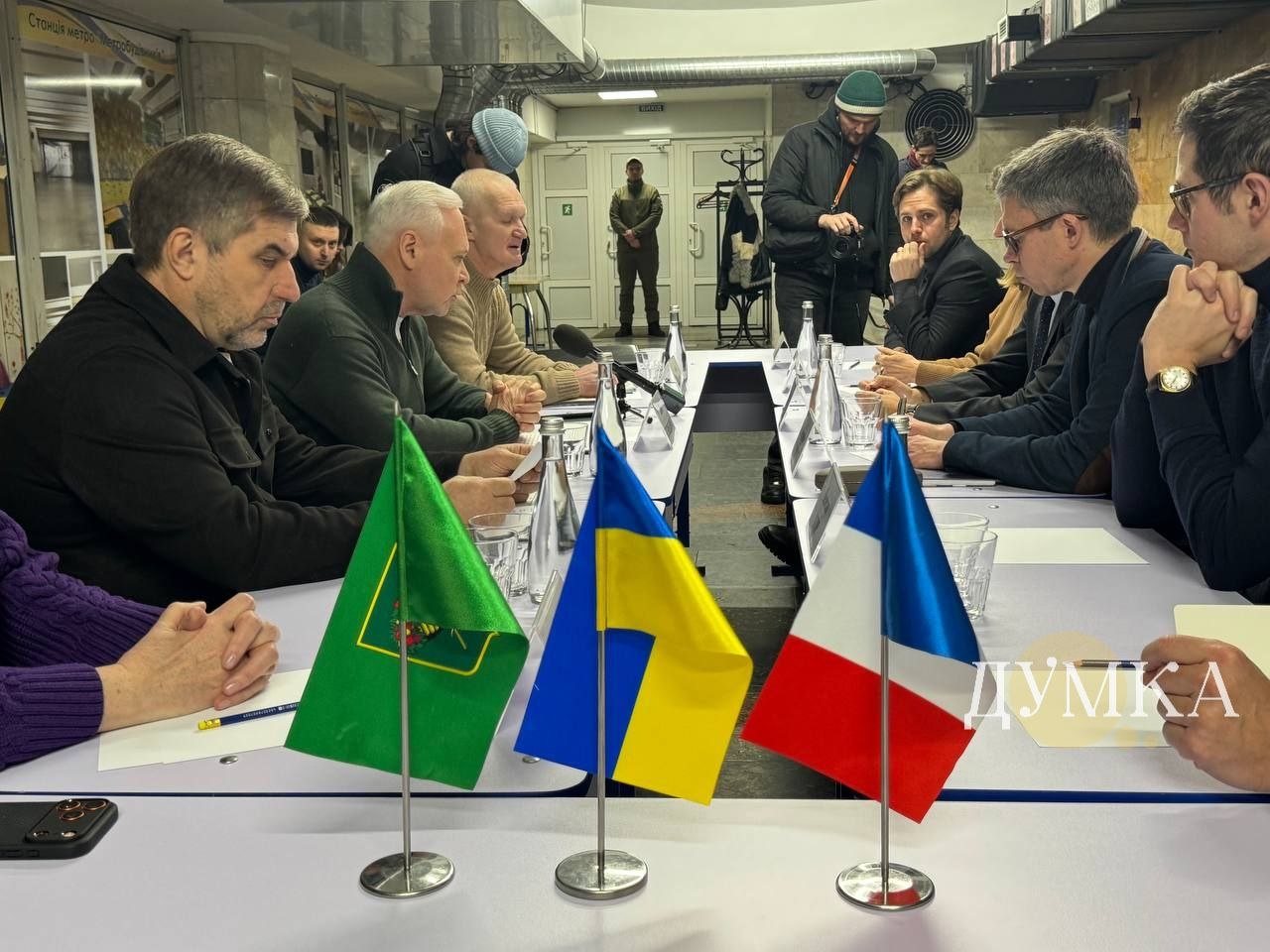 Французский политик посетил харьковскую метрошколу на станции "Университет", где пообщался с преподавателями и школьниками. После чего состоялась рабочая встреча с руководством Харьковского городского совета и мэром.