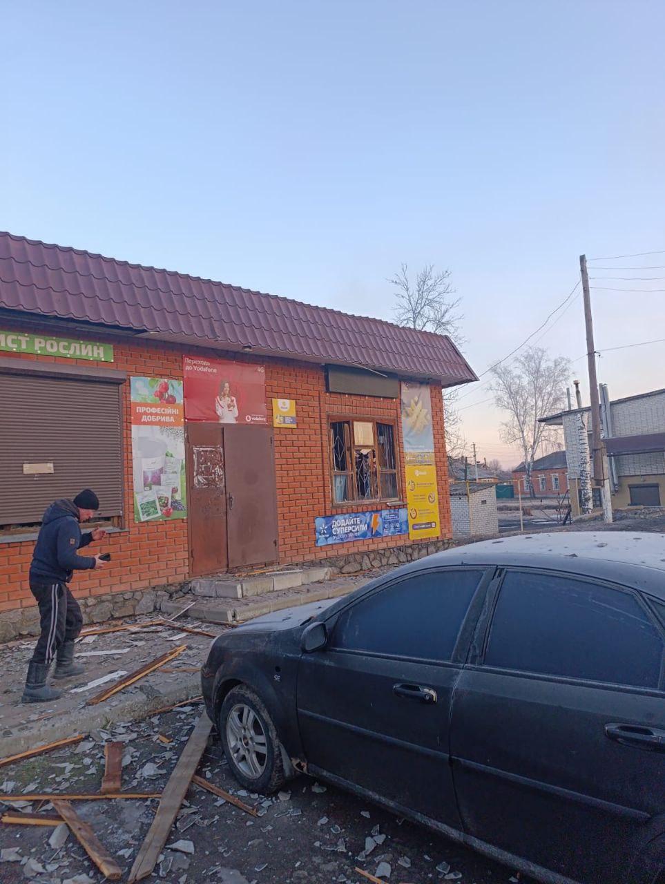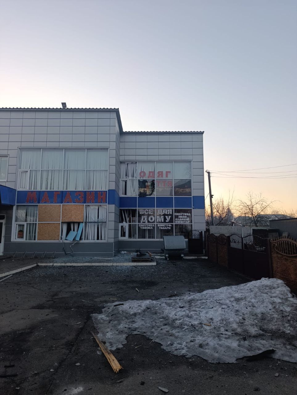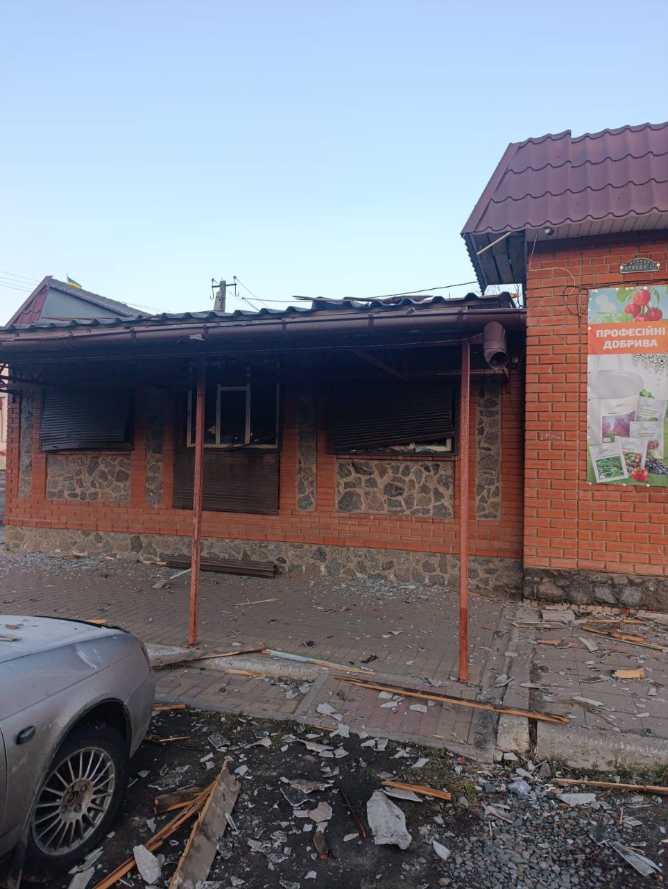 В результате атаки предварительно повреждено помещение дома культуры, казначейства, налоговой службы, 5 магазинов, два склада агропредприятия, три единицы сельхозтехники, склад производственного предприятия, легковой автомобиль.