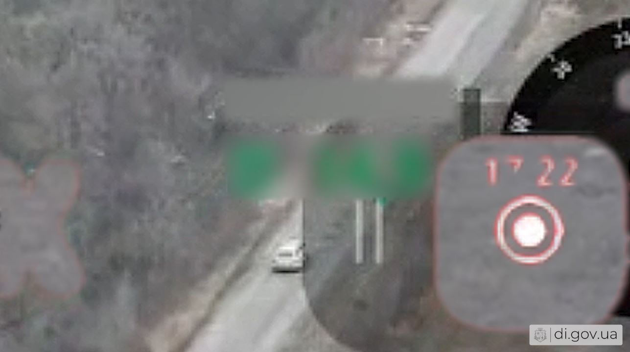Украинский разведывательный беспилотник, следящий за оперативной ситуацией, зафиксировал как россияне в очередной раз пытаются поразить гражданское авто, которое ехало по трассе Дергачи – Казачья Лопань.