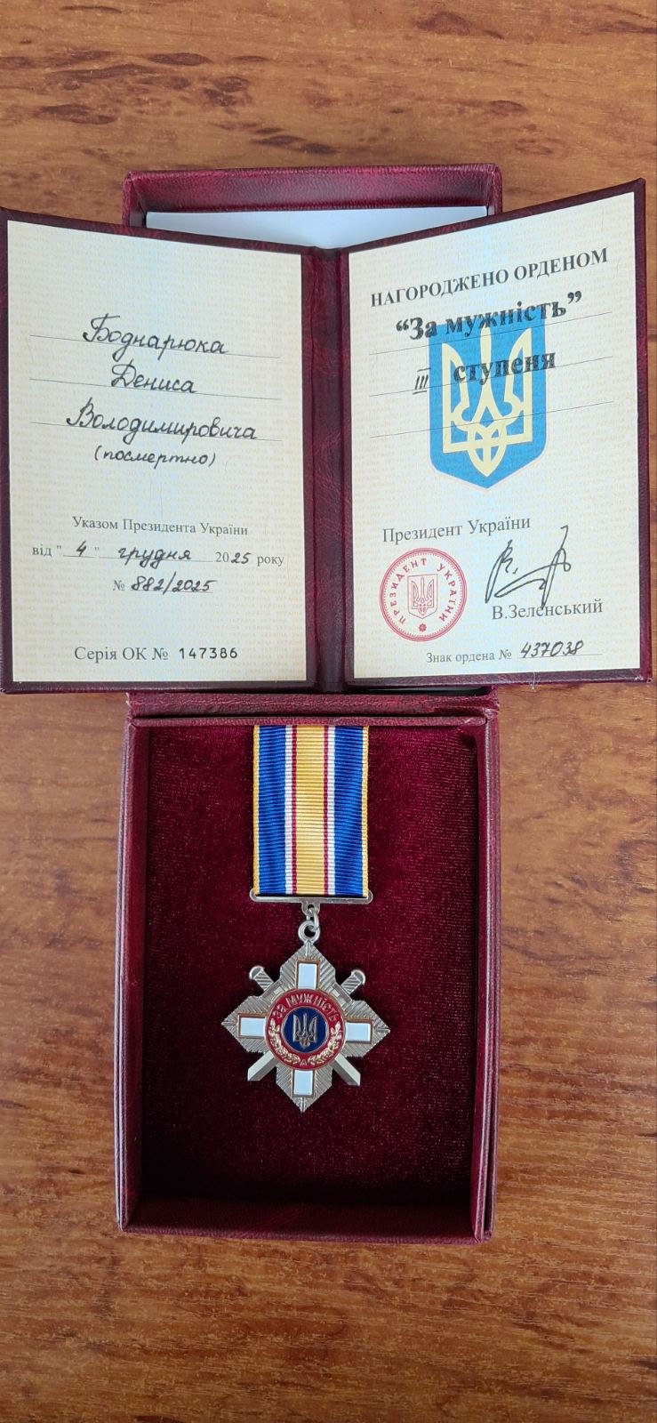 В Чугуевской громаде Харьковской области состоялась церемония передачи государственной награды семье погибшего защитника Дениса Боднарюка.