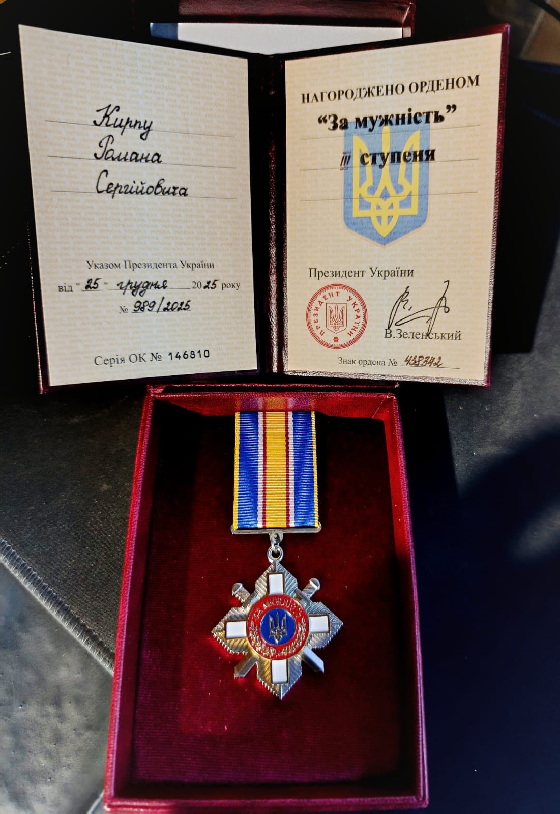 За личное мужество и преданность Украине, Указом Президента Владимира Зеленского Роман Кирпа награжден орденом "За мужество".