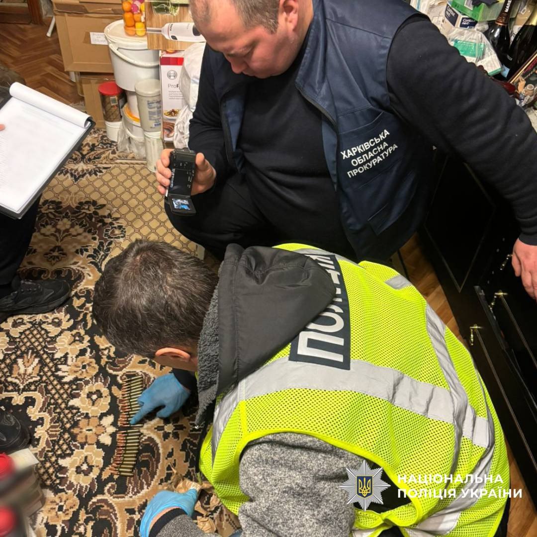 За даними поліції, зокрема, у квартирі 64-річного харків’янина вилучили предмет, схожий на корпус ручної гранати Ф-1, рушниці різних маркувань та відповідні до них боєприпаси, кілька патронів без маркування, а також предмет, схожий на револьвер із патронами. Усі вилучені речові докази відправили на експертизу.